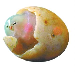 张永明说,在他的奇石藏馆里展出有500多枚石头,按他自己严格的标准,其中有300多枚精品,四五枚出类拔萃,可见一个“奇”字的难能可贵。说到奇石,就不能不提内蒙古玛瑙奇石《雏鸡》了。《雏鸡》为大家所熟知的原因,在于上个世纪90年代初那个经国家认证、由多位专家给出的惊人评估价――1.3亿元。“估价的标准是造型逼真,纹理奇特。”细看这枚天价奇石:一只色泽淡黄毛茸茸的小鸡从蛋壳的破处向外张望,细嫩的小红嘴,乌黑的双眼,湿漉漉的鸡头,毛茸茸的身躯以及色泽逼真的大半个蛋壳,真的很难想象,如此逼真的一副小鸡出壳的场景,居然是一枚天然玛瑙石自然形成的,又怎能不令人拍手称奇呢!